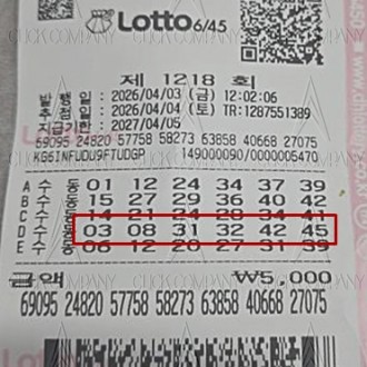 로또클릭 1218회차 동행복권 당첨번호2026-04-04 3283132424525 1등 1,714,482,042원 당첨자수 18명 2등 64,293,077원 당첨자수 80명 3등 1,780,356원 당첨자수 2889명 동행복권 추첨방송 [ 1218회 ] - 2026년 04월 04일 방송 동행복권 사이트 바로가기