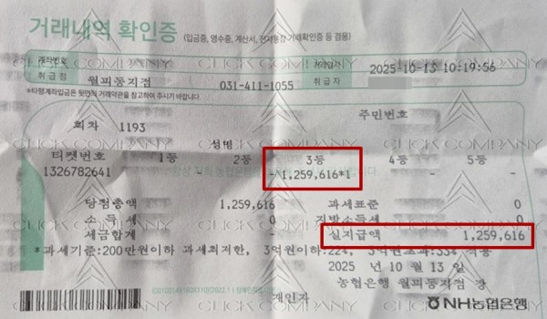 위 당첨 용지는 로또클릭에서 분석번호를 받아 당첨이 된 당사 회원에게 직접 전달 받았으며,