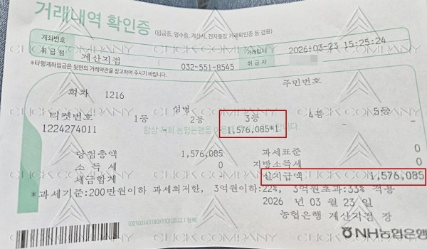위 당첨 용지는 로또클릭에서 분석번호를 받아 당첨이 된 당사 회원에게 직접 전달 받았으며,
